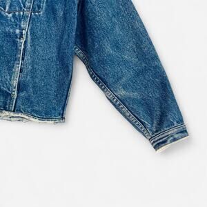 Everyone needs at least one denim jacket. Let this be yours! Upcycled by Portland, OR textile designer Chloe Cox. It features raw edge details throughout, that perfect denim wash, pockets, and an almost-cropped fit. NWT. Originally $178