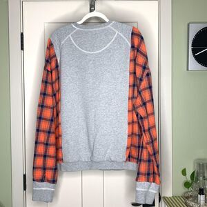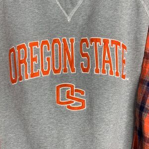 Upcycled Oregon State University Sweatshirt with Flannel Sleeves Oversized Fit