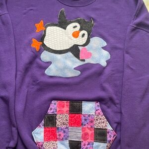 Upcycled Penguin Appliquéd Crewneck Sweatshirt w/ Quilted Pocket, 3X, Craftcore