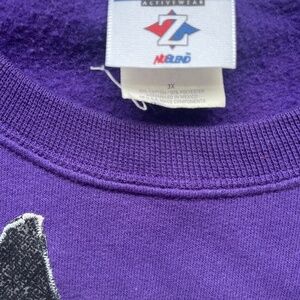 Embrace the uniqueness of this Upcycled Jerzees crewneck sweatshirt, designed for women who appreciate a blend of comfort and style. The sweatshirt features a quirky penguin appliqué that adds a playful touch to your attire, while the quilted pocket infuses a sense of practicality. In a rich purple hue, it's a versatile addition to any wardrobe, perfect for any season—from the brisk winds of winter to the gentle breezes of spring. Crafted from a cozy blend of cotton and polyester, this long-sleeve pullover promises ease of wear and durability. The crew neck and oversized fit ensure an ideal choice for those who love handmade styles and upcycling vintage finds.