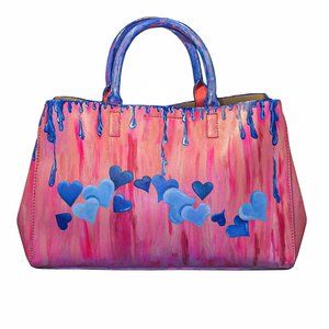 Embracing the vision of perseverance and resilience, this hand-painted pink Banana Republic handbag symbolizes the unwavering spirit to keep moving forward, even when faced with a seemingly frigid and somber world.