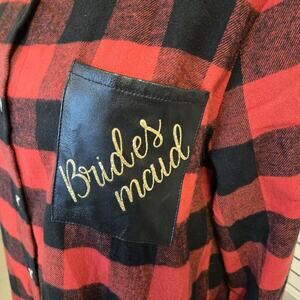 Upcycled Red Buffalo Plaid BRIDESMAID Button Flannel MED Long Wedding Party
