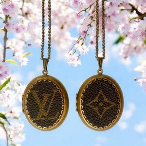 *Handmade Locket Necklace featuring authentic genuine L V Monogram Canvas