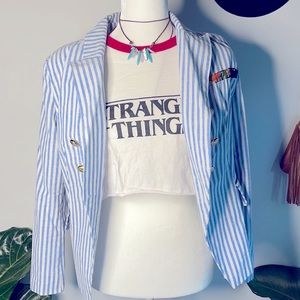 Upcycled stranger things crop T-shirt- Love it paired with the blazer!