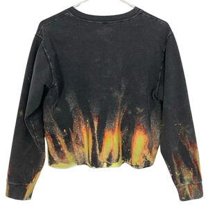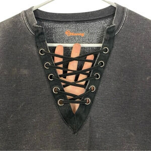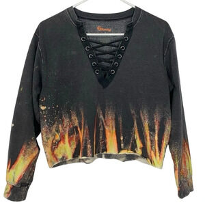 Upcycled Sweatshirt Pullover Crop Womens Small XS Medium Lace Up Reverse Tie Dye