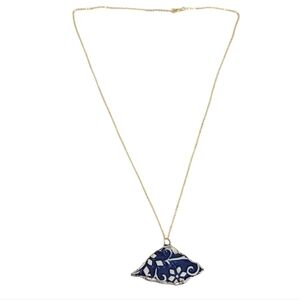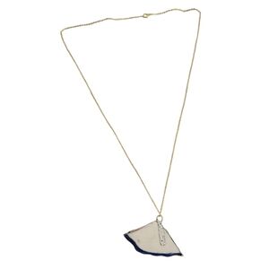 This upcycled necklace features a unique trapezoid-shaped pendant crafted from broken ceramic, plated in gold for a touch of elegance.