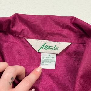 Upcycled Vintage 80s Fashion Attitudes Pink Button Up Blouse, Size 14