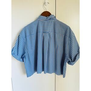Upcycled Vintage Orvis Button-Up Shirt Cropped Blue Size XL Preppy Reworked
