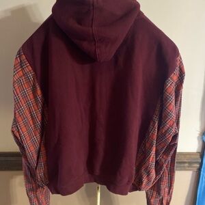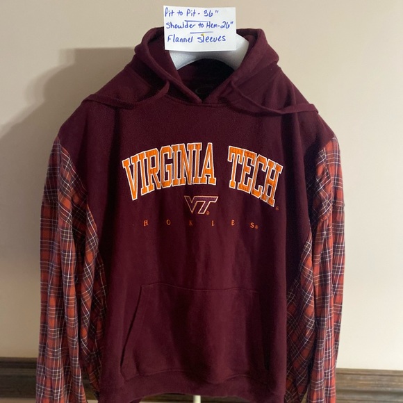 Upcycled Virginia Tech Maroon and Plaid Men's Hoodie size XL