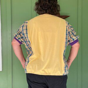 This Upcycled Stitch creation brings together two favorite worlds — a cheerful Winnie the Pooh graphic tee and soft plaid sleeves with a playful tie-front hem. Every seam tells a story, reworked by hand into something truly one-of-a-kind. 💛