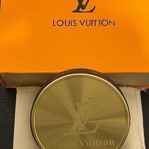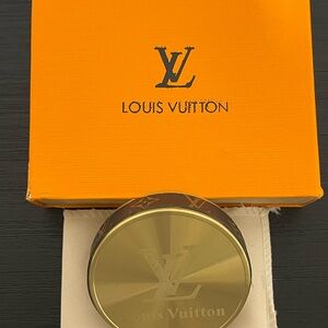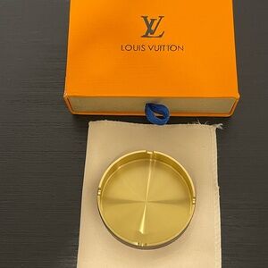 Upcycled ashtray. Features elegant gold and brown tones. Perfect for adding sophistication. Comes w box and dust pouch.
