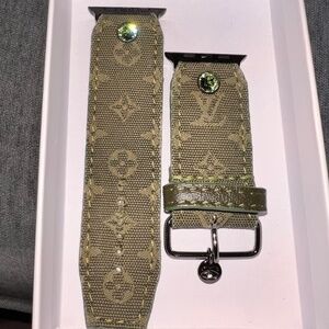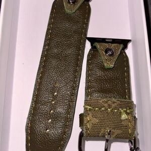 Upcycled authentic Louis Vuitton olive green mini Lin with logo Apple Watch band