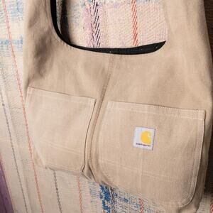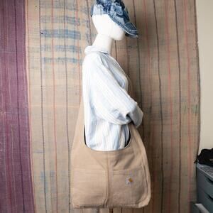 Handmade upcycled Carhartt hobo bag crafted from reclaimed Carhartt canvas workwear.