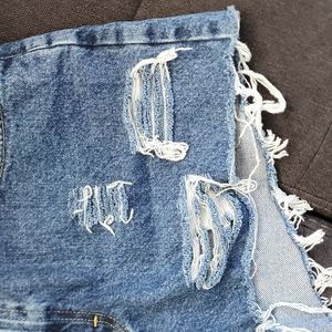 Upcycled distressed denim shorts. One of a kind. I am a size 12 and they fit me perfectly. These were upcycled from a pair of LEE men's jeans, very comfortable. See measurements below. Smoke free home.