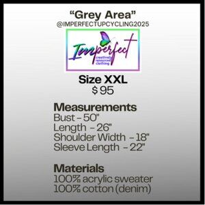 Frayed and fringed denim with this soft grey sweater morphed in this upcycled ode to the in-between. Refined and ready for wherever you land—because not everything needs to be black and white. Soft, cozy, and a perfect piece for a relaxing Sunday afternoon.