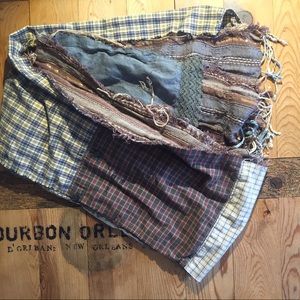 Upcycled plaid earth-toned scarf 9.5" x 70"