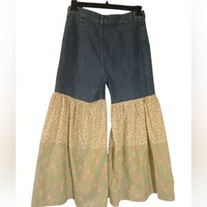 Super cute unique upcycled Rider by Lee stretch high rise waisted jeans with floral big bell bottom legs! size 12 measures flat 15" waist 11.5" rise 28" inseam , in very nice condition Love this boho gypsy dancing queen vibe!