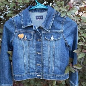 Upcycled with Fabric Hearts 💕 Place Kids Classic Blue Jean Jacket.