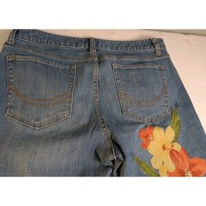 Upcycled jeans with floral patches, fabric inserts. Old Navy women's size 12