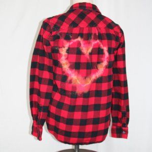 Upcycled women’s flannel heart Valentine’s Day distressed wearable art red plaid