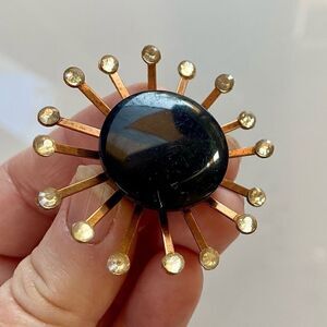 Upcycled Atomic Starburst Refrigerator Magnet Buttons Rhinestones Black