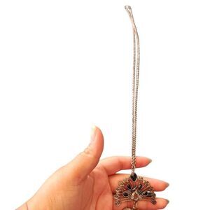 Upcycled Boho Silver with Blackstone Peacock Long Chain Necklace