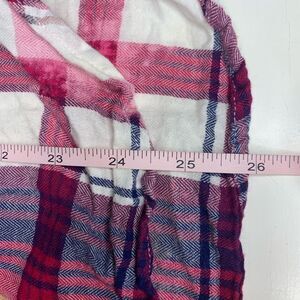 Upcycled Pink and Navy Distressed Bleach Splatter Plaid Button Down Shirt
