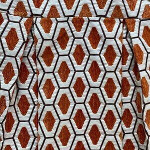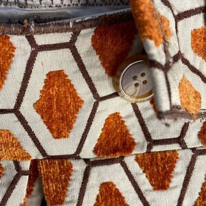 This is a very wonky and unique handmade skirt from recycled upholstery fabric. It has 2 poets in the front a side zip and a button closure. Measurements are in the photos. The fabric is thick and 60’s MCM vibe so it you want to upcycle it further, it’s ready to go!