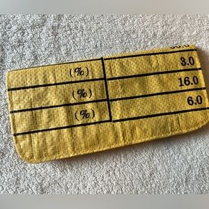 Upcylced Rice Bag Wallet, Made in Cambodia. Yellow. Like New