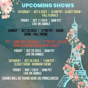 @tollbranchfarm I finally managed to get my Poshmark Gents show on the schedule. When I have more time I'll add it to the future weeks as well.