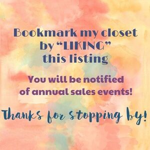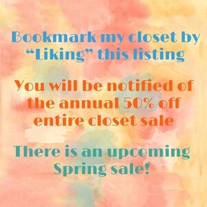 LIKE this post to bookmark my closet. I will send you specials, discounts, along with buying and selling tools.