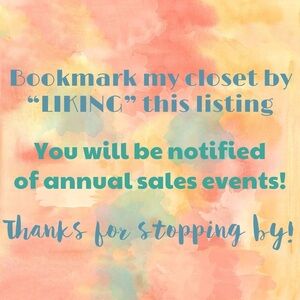 LIKE this post to bookmark my closet. I will send you specials, discounts, along with buying and selling tools.