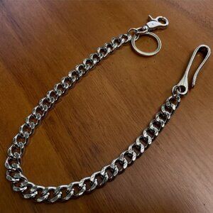 Wallet chains are a new twist on an old gentleman's accessory.This wallet chain features a beefy, lobster claw clasps to attach to your belt loop, a durable steel clasp to attach to your wallet or belt loop and a rugged key hoop so you can also attach your keys, keeping all your stuff protected.