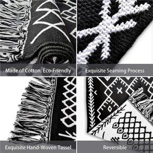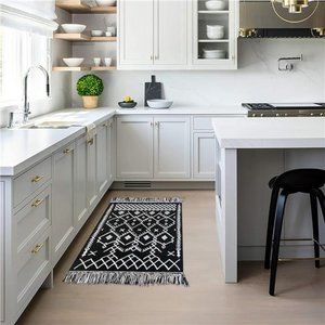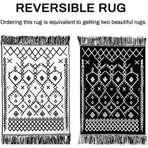 Upgraded Boho Bathroom Rug 2'x3',100% Woven Boho Rug for Bedroom Black White Rug