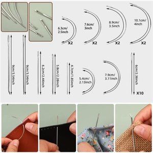 🧿Leather Sewing Needles: 25pcs needles, contains sewing needles of various sizes and functions. Such as sack needles, carpet needles, straight upholstery needles, triangle leather stitching needles, curved mattress needles, big eye needles, etc.