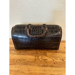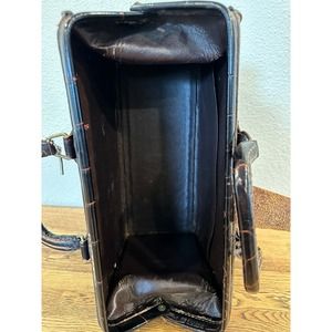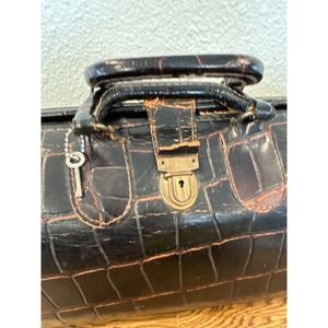 Read entire description. The history is amazing. See the pics for details. Will reimburse 1/2 of the shipping up to $35.00 once the item is paid. Upjohn Homa Doctors Bag Brown Leather, with large Alligator Texture. These bags were given to medical students by the Upjohn pharmaceutical company. George McClelland designed this bag. The leather bags were made from calf skin. This is a hard case with a brass hinge that locks the bag open. The key is included with this bag, which is very RARE. The brass latch and hinges both work great. The leather tab to pull the bag open has been torn off. See pics for details. It has durable feet to protect the bottom of the bag. The brass buckle is signed HOMA. Excellent condition for a bag of this age. Numbers on the inside of the bag-0885. 14X8X6.