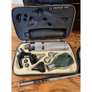 Welch Allyn Otoscope Opthalmoscope Diagnostic Box Set. The case and its complete set of contents are in excellent condition for its age. Zipper is in working condition. There is a label on the inside of the case that says La Gourge M70. The bottom of the handle has the initials JRM. The set was not tested, as I did not want to damage it. NAVANE Thiothixene Reflex Hammer Pharmaceutical Drug Rep Rubber. The handle says "NAVANE (thiothixene)" on one side, and the other side says, Courtesy of your Roerig Representative. Excellent condition for its age. Stethoscope, excellent condition for its age, with all pieces intact. It doesn't have any significant markings. Not able to determine the brand.