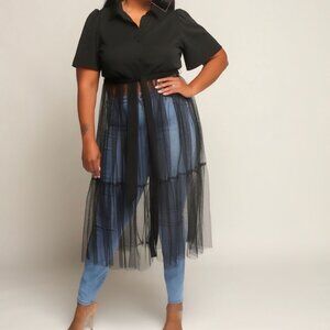 The Uplifting Collared Mesh Belted Top (Plus Size) is the perfect mix of chic and casual. With its button-down front, sheer mesh accents, and collared neckline, it adds a touch of sophistication to your everyday look. The waist belt is removable, giving you the option to swap it out for your own and style it your way.