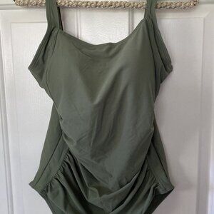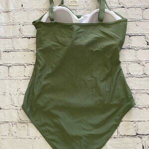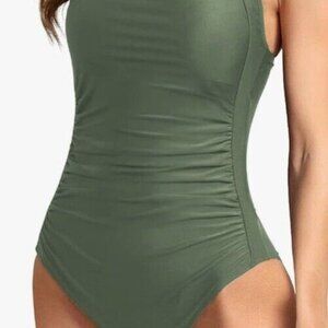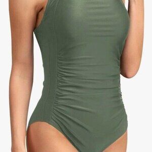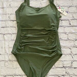 Upopby Womens Padded One Piece Tummy Control Swimsuit Olive Green Size 12 NWT
