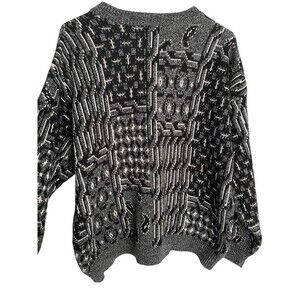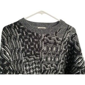 Vintage Upper Body Knit Sweater L Black White Abstract Geometric Paisley