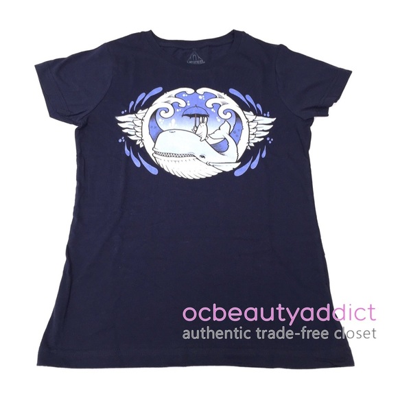 Upper Playground Rabbit Riding Whale Navy Tee NEW