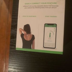 Upright go improve your posture. tiny wearable device that improves posture by vibrating every tim you sliuch. works with Android and Iphone"New"