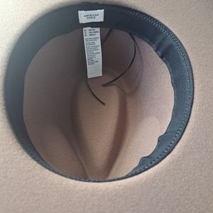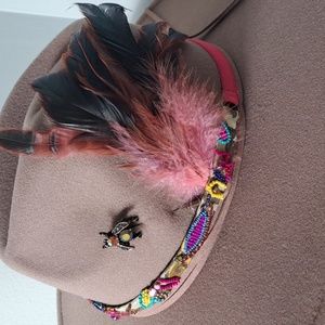 Upscaled Dark Tan American Eagle Wide Brim Feathered Hat With Bead Hatband