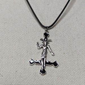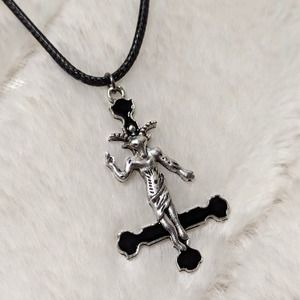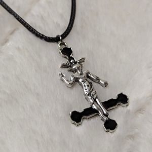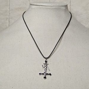 Upside-down Cross Baphomet Demon Silver and Black Charm Rope Necklace