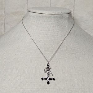 Upside-down Cross Baphomet Demon Silver and Black Charm Silver Necklace