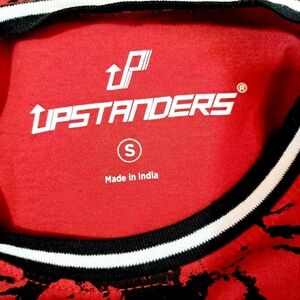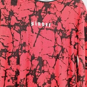 Upstanders Red Black Marbled Print Embroidered Sinner Shirt Size Small
