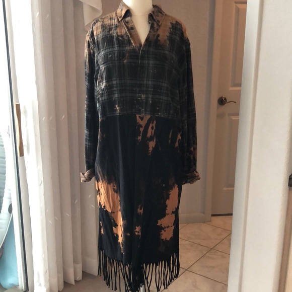This topper is cute with leggings or jeans. The top is a men’s size large flannel shirt. Fits a large/extra Large. Worn a couple times so in great condition.