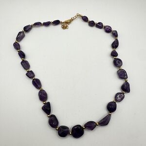 Up to 20", Polished Amethyst chunks with gold tone accent beads, necklace!