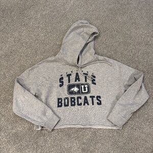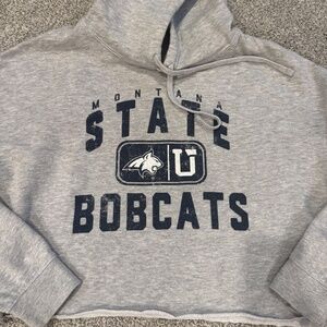 Women's Uptop Cropped Hoodie Sweatshirt, L, EUC, Gray sweatshirt with Navy MSU Bobcats, Lightweight, Boxy shape. Measures: 24" arm pit to arm pit and 18" length.
