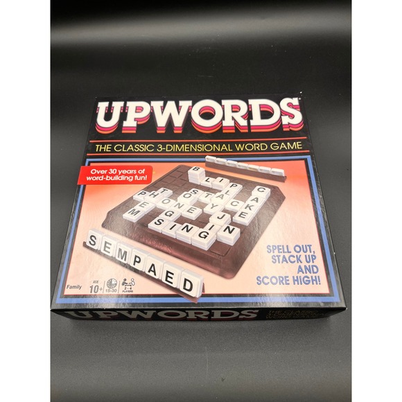 Keywords: Upwords, Board Game, Word Game, Family Game, Vintage Game, Hasbro, Classic Game, Tile Game, Educational Game, 3D Word Game, Retro Game, Board Games, Games, Tile Letter